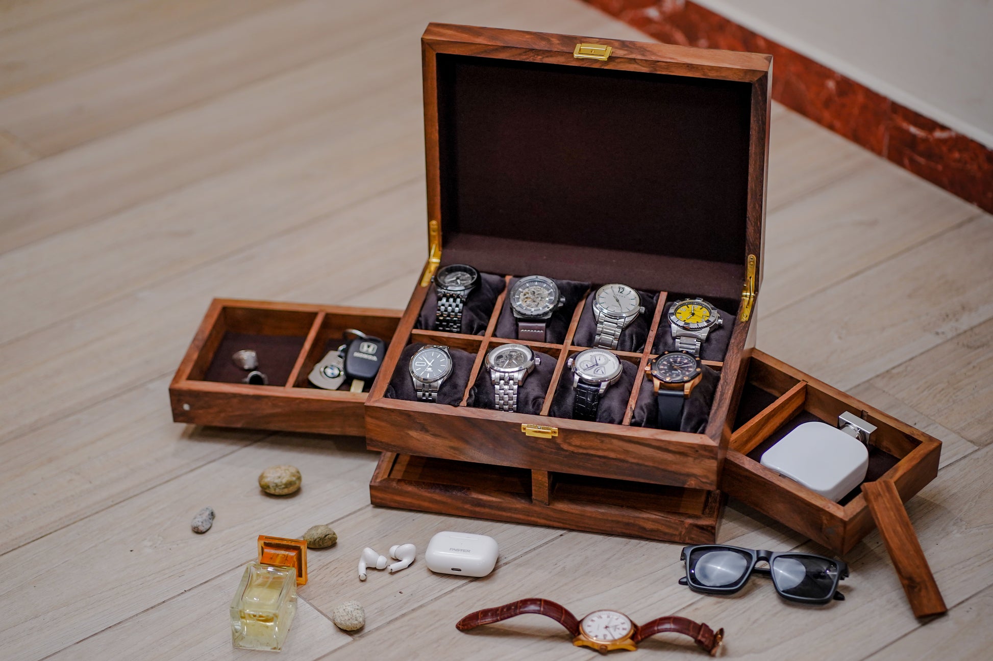 Luxury Wooden Watch Box Side Drawer ( 8slot+2 draz)