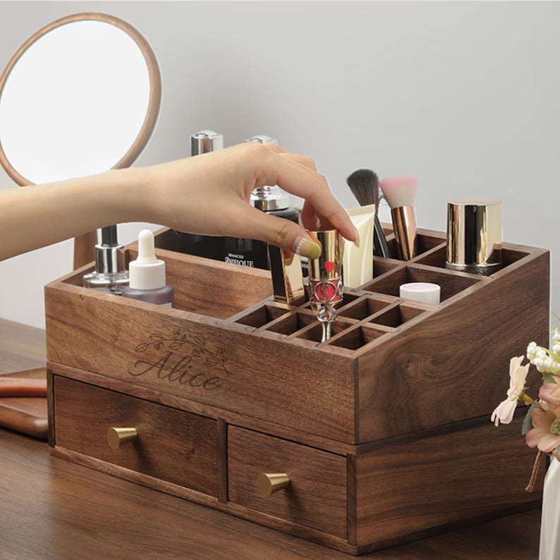 *"A beautifully designed organizer that keeps all my makeup in one place. The personalized engraving made it the perfect gift." - A Happy Customer*