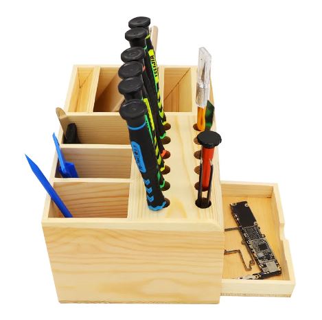 This Multi-Function Wood Box is perfect for organizing your desktop. Crafted with sheesham wood, it is handmade and built to last. Featuring poly-functionality, it offers an efficient way to store and organize your tools while adding a classic touch to any workspace.