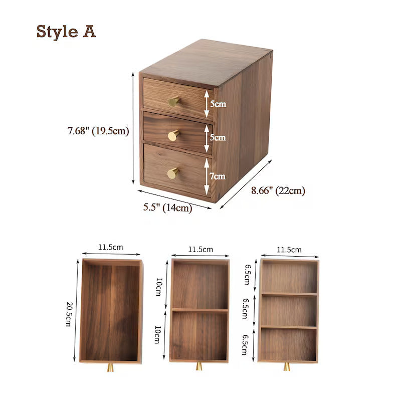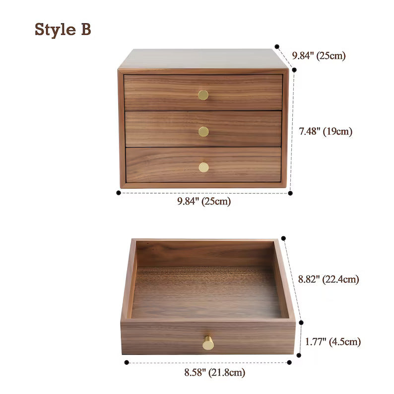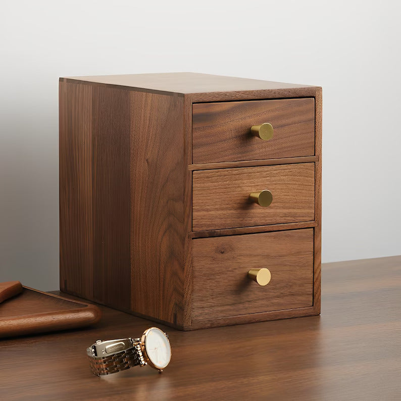 ### Product Description: Personalized Solid Walnut Desktop Drawer Cabinet