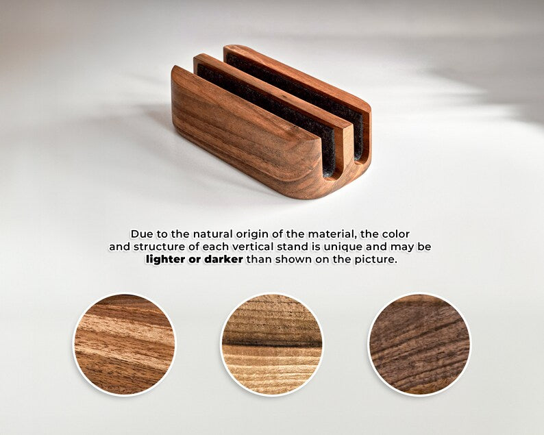 To maintain the appearance and functionality of your vertical holder, clean with a soft, dry cloth. Avoid exposure to moisture and excessive heat.