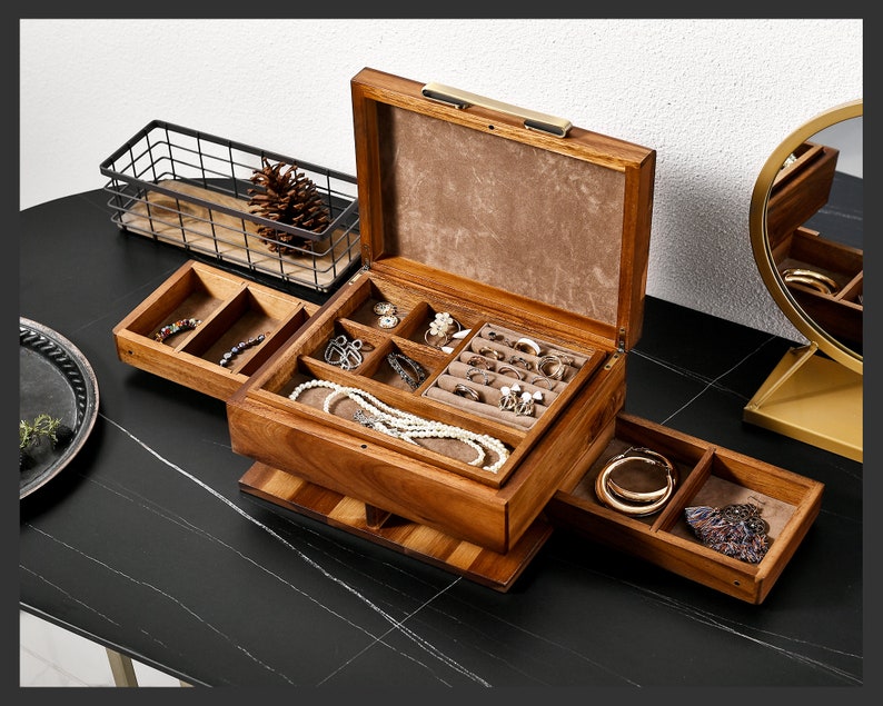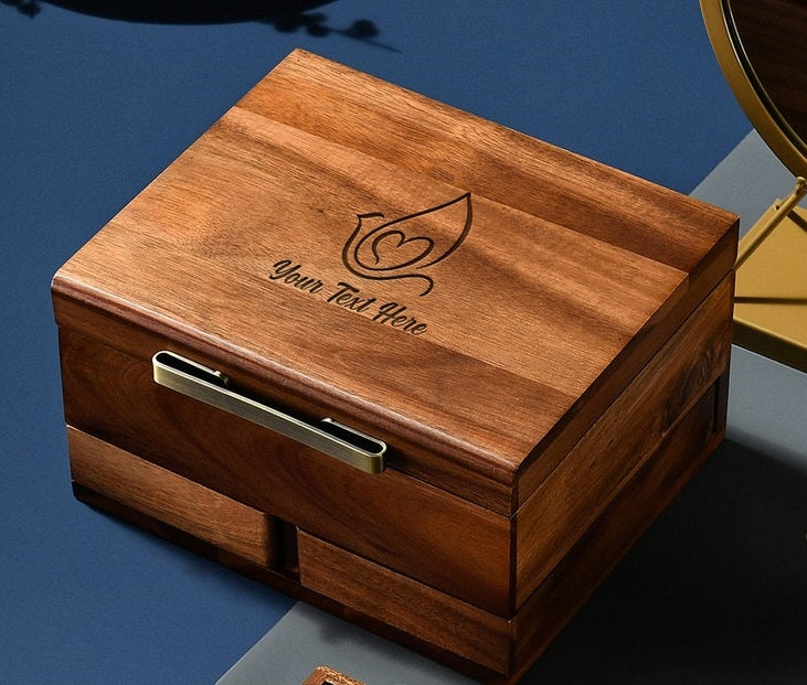 This stylish Wooden custom engraved Jewelry Box is made with Sheesham wood, making it a long lasting and wear and tear free item. Handcrafted and custom engraved, this jewelry box is a perfect addition to any home or business.
