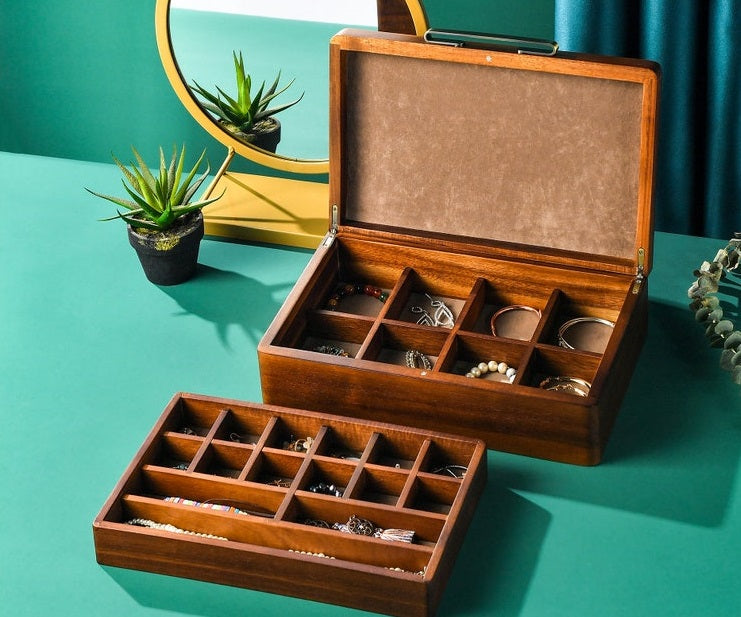 The Sheesham jewellery box is made of incredibly strong, natural wood and lined with the softest, most supple velvet to protect all of your jewellery. Beautiful and enduring, this box has a classic style that is always current. A comfortable Lock makes it easy to easily open the lid.