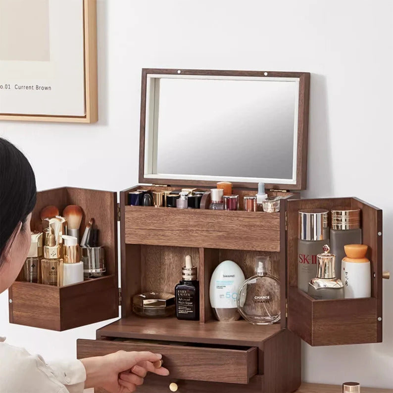 ### Product Description: Wooden Makeup Organizer – Large Capacity Cosmetic & Toiletry Storage
