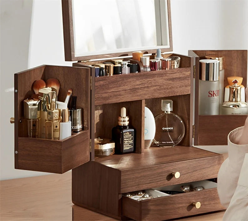 Wooden Makeup Organizers, Large Capacity Cosmetic & toiletry storage,Jewelry box,Makeup Beauty storage cabine,Personalized Gift for wife her
